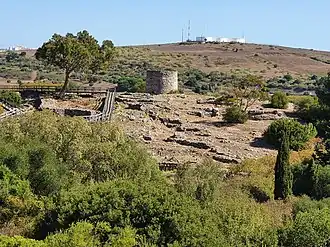 The Castro de Leceia or Leceia Eneolithic Station (Estação eneolítica de Leceia) is an archeological site of the Castro culture located in the Portuguese civil parish of Barcarena in the municipality of Oeiras.[1] The area was first occupied during the end of the Neolithic (4th millennium BCE) and throughout the Chalcolithic,[1] being abandoned somewhere between the end of the 4th and the beginning of the 3rd millennium BCE.[2] The Castro was first dug and reported in 1878 by Carlos Ribeiro, who presented his results to the Lisbon Academy of Sciences in what may be considered the first monograph dedicated to a pre-historical Portuguese settlement.[2] The last interventions date to 2003.[1] The site is classified as a public interest monument (Imóvel de Interesse Público) since 1963.[1]