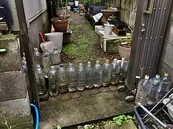 In Japan, plastic bottles are often placed outside houses because of the belief that the light from the water will reflect and stop the cats from entering the property to urinate.[12]