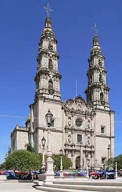 The Cathedral Basilica of Our Lady of St. John of the Lakes (Spanish: Catedral Basílica de Nuestra Señora de San Juan de los Lagos), also called San Juan de los Lagos Cathedral, is a Catholic church located in the city of San Juan de los Lagos, in the state of Jalisco, Mexico, the seat of the Diocese of San Juan de los Lagos.[1][2][3][4] This Cathedral-Basilica ranks second in the number of visitors in the country (more than 7 million pilgrims a year) after the Basilica of Our Lady of Guadalupe.