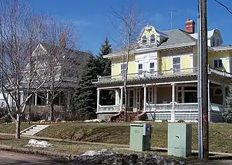 • William Beach Home, 303 North Summit Avenue: A Shingle-style home built in 1893. Its exterior is clad in teal shingles and wood siding. It has a large wrap-around porch supported by balustrades. Its front façade features a panel with a "unique twisted-stick design".[2]: 4