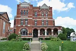 The cathedral is a brick masonry building designed in the Romanesque Revival style by Patrick F. Meagher, who would later design the Buchanan County Courthouse.[4]