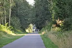 The Snohomish County Centennial Trail is a 30-mile-long (48 km) rail trail in Snohomish County, Washington, connecting the cities of Snohomish, Lake Stevens, and Arlington to Skagit County along the corridor of Washington State Route 9.[1] The trail, administered by Snohomish County Parks and Recreation, is on the former right-of-way of the Seattle, Lake Shore and Eastern Railway and comprises a 10-foot-wide (3.0 m) non-motorized trail and a 6-foot-wide (1.8 m) equestrian trail.[2] The first segment of the corridor was opened in 1989, the centennial of the statehood of Washington, and the final segment between Arlington and the Skagit County line was opened in 2013.[3]