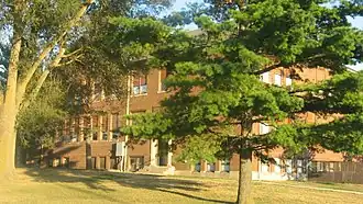 Center Township Grade and High School, also known as Mays Elementary School, is a historic school building located at Rushville, Rush County, Indiana. It was built in 1929, and is a 2+1⁄2-story, brick building with Classical Revival and Prairie School style design elements. It has a flat topped hipped roof, overhanging eaves, and sparse stone and brick detailing.[2]: 5