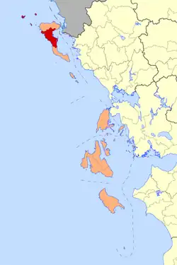 Central Corfu and Diapontian Islands (Greek: Κεντρική Κέρκυρα και Διαπόντια Νησιά, Kentriki Kerkyra kai Diapontia Nisia) is a municipality in the Ionian Islands region in Greece. It covers the central part of the island of Corfu and the Diapontian Islands. The municipality was formed at the 2019 local government reform, when the pre-existing municipality of Corfu was divided in three.[3] Its seat is the city Corfu.[3]