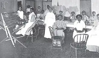 In 1904, a one-and-a-half-story chapel was built as a multi-purpose space for religious services, dances, concerts, and graduation ceremonies for the hospital's nursing students. Its simple 80x50 foot Gothic Revival design was conceived by Dr. William Francis Drewry and constructed by G. B. Keeler & Son. Twenty-four fire hydrants were installed and a fire house was built. Drying machinery was purchased for the laundry and an internal telephone system was installed. Workshops were established for carpentry, shoe repair, broom- and mattress-making. These activities were used as occupational therapy.