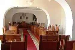 - Begun in 1610 and restored in 2003 after decades of neglect, its interior features a steeply sloped nave and several tombstones with Latin inscriptions. The central chapel retains traces of ancient frescoes.[52]
