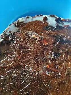 Chaku (Nepali: चाकु pronounced [ˈt͡saku] ⓘ) is a Newari confection made from concentrated sugarcane juice, jaggery, ghee, and nuts. The mixture is cooked down until it is a solid form, and then pulled on a hook in a manner similar to making taffy and then cut into small rolls, or it may be cooked in a shallow dish and cut into small diamond shaped pieces. Chaku may be eaten separately, or it can also be used in making Yomari (योमरी).