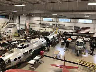 The museum began with the purchase of the wreckage of a JB-17G/model 299Z, a B-17 engine testbed variant with a fifth engine mounted on the nose, and several other parts sourced from various B-17s. The parts and pieces arrived at Grimes Field in November 2005. Restoration work started on the aircraft by volunteers at the south end of the airport soon after. The museum was established as a 501(c)(3) non-profit organization in 2008, the same year a North American B-25 Mitchell was purchased.[4][5] The next year the museum purchased a C-47 and a former waterbomber A-26.[6][7] Work continued on the B-17 at the south end until 2010 when a purpose built hangar was completed and the B-17 project as well as the newly acquired aircraft were moved into it.[8] In August 2011, the museum recovered the remains, primarily the empennage, of a B-17G wreckage from Talkeetna, Alaska for use in the restoration.[9] In November 2018, a Grumman C-1 Trader in flying condition was donated to the museum.[10] Then a month later, in October, ground was broken on a project adjacent to the hangar to expand the museum by 20,000 sq ft (1,900 m2).[11][12] In 2019 the restoration workshop was completed. In 2025 the museum completed an additional building expansion for learning and exhibits.