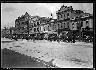 Ah Chee established two centrally located fruit shops by 1880, under the name Ah Chee & Co: one on 13 Queen Street, across from The Auckland Chief Post Office, and the other across from the Auckland Ferry Terminal on the corner of Queen and Quay Street.[3] Between 1900 and the 1930s, the Ah Chee family owned at least seven shops in Auckland.[3]