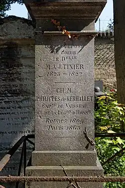 Charles-Marie Philippes de Kerhallet (17 September 1809, in Rennes – 16 February 1863, in Paris) was a French navigator. He received his education in the naval school of Angoulême, became a midshipman in 1825, and was promoted captain in 1849. He served in South America, commanded the stations of Newfoundland and Cayenne, made soundings in the Gulf of Mexico, and prepared valuable charts. His works include Instructions pour remonter la côte du Brésil depuis San Luiz de Maranhão jusqu'au Para (Paris, 1841); Description nautique de la côte du Mexique (1849); Description nautique de la côte de l'isthme de Panama (1850); Considérations générales sur l'Océan Atlantique (1852); Considérations générales sur l'Ocean Pacifique (1853); and La navigation dans la mer des Antilles et le golfe du Mexique (1859). His contributions to science include refinements to understands of oceanic gyres.[1]