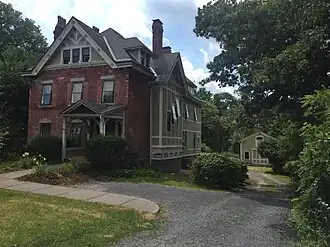 Charles Chauncey Dwight House, also known as the Hopkins-Dwight House, is a historic home located at Auburn in Cayuga County, New York. It was originally built in 1835, and expanded sometime after 1871 when it was purchased by Charles Chauncey Dwight, a State Supreme Court justice, residing in Auburn. It is a 2+12-story, brick and frame dwelling in the Queen Anne style with faux timbering detailing, a limestone foundation, and a cross-gabled slate roof with dormers. Also on the property is a contributing mid-19th century wood front gabled barn.[2]