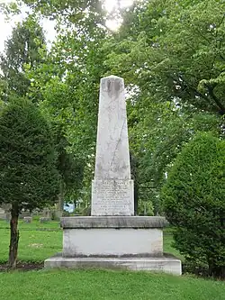Obelisk marking the grave of the cemetery's founder, Charles Evans