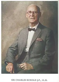 Renold was educated at Abbotsholme School and Cornell University. He was granted an honorary LL.D. from the Victoria University of Manchester in 1960.[5] He lived in Heaton Mersey, and latterly in Chapel-en-le-Frith, Derbyshire.[5] He the first chairman of the British Institute of Management in 1946 and was knighted in 1948.[6] The Renold Building at the University of Manchester is named in his honour.
