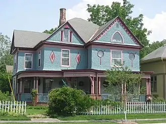 Charles H. and Emma Condon House, also known as the Andrew J. Thompson House, is a historic home located at Frankfort, Clinton County, Indiana, United States. It was built about 1902, and is a two-story, Queen Anne style frame dwelling on a brick foundation. It has a clapboard and shingled exterior and an irregularly gabled and hipped roof. It features a one-story wraparound porch with paired Doric order columns. It was restored in the 1990s.[2]: 5