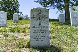 Charles Joseph Loring Jr. (October 2, 1918 – November 22, 1952) was a fighter pilot in the United States Army Air Forces in World War II, and later in the United States Air Force in the Korean War. Loring rose to the rank of major and posthumously received the Medal of Honor for his heroic actions on November 22, 1952, above Kunwha, Korea during a close air support mission.