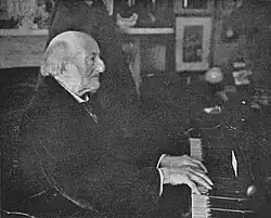 In his later years he made an annual custom of publishing a song on his birthday. He produced more than 200 songs, to texts by Horace, Catullus, Metastasio, Byron, and others.[12] He composed a funeral march in memory of Victor Hugo, which was performed at the Albert Hall, and released a comic opera, Pickwick, in 1889.[23][24]