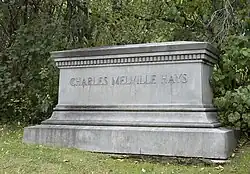 Hays is credited with the formation of the Grand Trunk Pacific Railway (GTP), a plan he had to create a second transcontinental railroad within the borders of Canada.[1] He is also blamed for the insolvency of both the GTR and the GTP. He died in the sinking of the RMS Titanic before his plan was complete.[1] Before the ship collided with an iceberg, Hays said that in the near future there would be "the greatest ... of all disasters at sea."[2] His body was recovered, and he was buried in Montreal. He had a wife and four daughters.