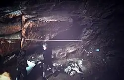 Charles McBurney mapping Layer 3 bone bed at La Cotte de St Brelade in 1976.