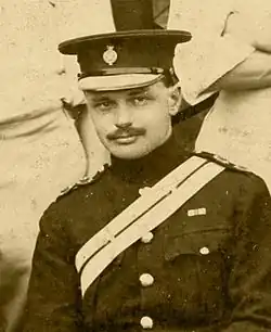In World War I, Charles Worsley served as a lieutenant in C Squadron of the Royal Horse Guards during hostilities in Flanders, commanding a machine gun section. On 30 October 1914, Worsley's section was cut off at Zandvoorde, Belgium, by a German attack and he was killed at the age of 27. Lord Worsley was first listed as "missing in action", but was officially recorded as dead early in 1915.[1]