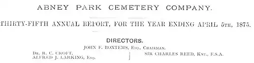 Abney Park Cemetery Company Annual Report for the year ending 5 April 1875