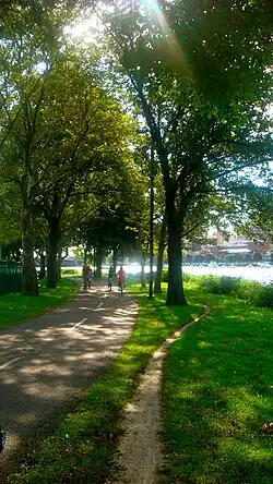 The path follows both shores of the Charles River from Boston, Massachusetts to Norumbega Park in Newton, passing through Watertown and Waltham.[3] The path consists of several segments in the Charles River Reservation separated by road and bridge crossings and forms part of the planned East Coast Greenway, the 3,000-mile trail system connecting cities from Maine to Florida.