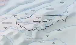 The Charles Robertson Grant was one of five property transactions made at Sycamore Shoals in the present day city of Elizabethton, Tennessee. Collectively known as the Watauga Treaties the transactions resulted in the Great Grant Deed, the Path Grant Deed, two Jacob Brown Grant Deeds and the Charles Robertson Grant Deeds. The Great Grant provided for the sale of land in Central Kentucky to the Richard Henderson and Company and was transacted on March 17, 1775.[1][2] The Path Grant provided for the sale of land in present day East Tennessee and Southwest Virginia and provided a secure path way into the Great Grant land in Kentucky. The Jacob Brown Grants provided for the sale of property included within the Nolichucky River watershed in present day Greene County Tennessee. The Robertson and Brown Grants clarified ownership of existing settlers south of the Treaty of Lochaber line and the Holston River