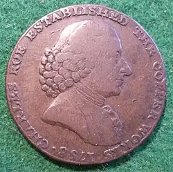 ![]() Profile of Charles Roe on a Macclesfield halfpenny dated 1758 | |