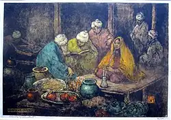 In 1889, he returned to England and married Emily Tate, but shortly thereafter, his wife and infant son died in childbirth. Bartlett then traveled to Europe, spending several productive years in the Netherlands, Brittany and Venice with his friend and fellow artist Frank Brangwyn (1867–1956). Brangwyn is believed to have introduced Bartlett to Japanese prints.[2] Bartlett produced some of his most important early works on the Continent, especially studies of peasants painted in broad areas of colour. He was invited to join the Société Nationale des Beaux-Arts in France in 1897. In 1898, he returned to England and married Catherine "Kate" Main. Bartlett returned to the Continent with his second wife, and in 1908, he helped found the Société de la Peinture a l'Eau in Paris. Several Continental museums acquired his paintings at the Paris exhibitions of the Société de la Peinture a l'Eau.[3]