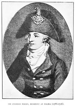 Sir Charles Warre Malet, 1st Baronet (30 December 1752 – 24 January 1815) was a British diplomat who served in the British East India Company as a Resident in the court of the Peshwa Marathas.