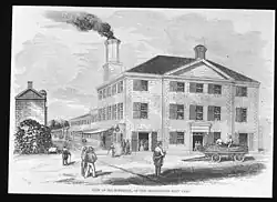 The ropewalk building was constructed between 1834 and 1838. It was designed by Alexander Parris, who also designed much of the rest of the Charlestown Navy Yard, and other landmarks throughout Massachusetts. From its opening in 1838 until its closing in 1970, it made most of the cordage used by the United States Navy.[1] When the Navy Yard was closed in 1973, the building was acquired by the Boston Redevelopment Authority.