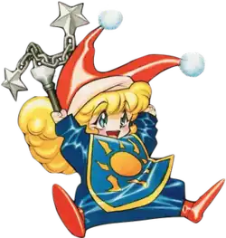 Charlotte was created for Trials of Mana, her design finalized by manga and anime artist Nobuteru Yūki based on concept art by Koichi Ishii. Her design in the Trials of Mana remake was created by the artist HACCAN.[1] Discussing her design, Ishii conceived Charlotte as a doll wearing an outfit that combined the concepts of an Italian festival costume and baby clothes, aiming to make a "cheerful and energetic young girl." He aimed for players to have a different impression of her cheerful designs after experiencing her story and the "deep sadness inside her."[2] Her dialogue was written by game producer Hiromichi Tanaka.[2] She was initially conceived as a "dependable, serious, down-to-earth character," but due to the art by Yūki, which producer described as "bright and cheerful," they opted to make give her a cuter character and disposition.[3]