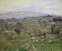 In 1910, he traveled throughout New England, providing locales for many of his subsequent paintings. That year, future president Woodrow Wilson and his wife Ellen bought one of his landscapes, Valley of Assisi, to celebrate their 25th wedding anniversary.[8]