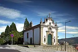 - Sanctuary of Senhora de Engaranho (Portuguese: Capela da Senhora do Engaranho/Capela da Senhora das Necessidades/Santuário da Senhora do Engaranho), a sanctuary dedicated to an uncommon invocation to the image of Mary (responsible for aiding those with diseased-, crooked-/crossed-legs, or afflictions associated with walking, such as rickets), families with young children would visit the sanctuary and bathe their children in a carved granite stone with "miraculous waters".[29] In addition to chapel to Our Lady of Necessities there are smaller chapels dedicated to St. Catejan, St. Blais and St. Benedict, and religious cross.[29]