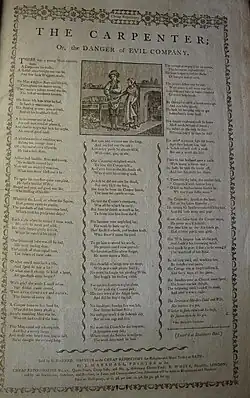 The new tracts were intended to point out the pitfalls of drunkenness, debauchery, idleness, gambling, riotous assembly, and seeking to rise above one's station, whilst simultaneously praising the virtues of honesty, industry, thrift, patience and an acceptance of one's pre-ordained place in society, by means of simple ballads and short instructive tales. They were published as either octavo chapbooks or else as broadside ballads, emulating the traditional forms of Street literature. Approximately one third of them were designated as ‘Sunday Reading’ and contained simplified Bible stories or else a more specifically religious message.[4]