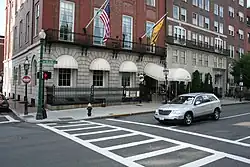 The Bull and Finch Pub was founded in 1969 by Thomas Kershaw and a partner. The two owned a building in Beacon Hill, Hampshire House, and wanted to find a use for the basement which at the time was inefficiently used as just storage. They tried to model the Bull & Finch on English pubs, complete with accoutrements imported from England. One story behind its name is that it is a reference to the architect Charles Bulfinch, who designed the Massachusetts State House among other buildings.[2] The bar was popular with locals in its first decade.[3] The upstairs of Hampshire House at the time was a private club called Quaffer's.[4] In 1982 Boston magazine awarded the Bull & Finch the title of Boston's best bar.[5][1]