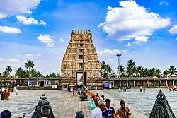 The complex has many other small monuments and features, such as the ane-bagilu or "elephant's gate" just south of the gopuram and a memorial of past destruction in the form of pillars and statues in the northwestern part of the complex.[30]