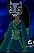 • Cheshire makes non-speaking appearances in the fifth season of Teen Titans.[37] This version is a member of the Brotherhood of Evil with the ability to turn invisible save for her mask's eyes and grin, akin to the Cheshire Cat.