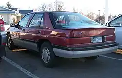The Corsica was first sold as a fleet car to rental agencies and large companies in 1987, prior to mainstream release. The Corsica and Beretta were the second best-selling passenger cars in America in calendar year 1988, right behind the Ford Escort.[3] Much of the suspension components were borrowed from the J-body Chevrolet Cavalier, and the chassis was an extension of that of the J-body, but modeled with similar proportions to the N-body. The L-body platform however, was engineered by Chevrolet rather than Oldsmobile. The car was equipped with either the 2.0 L TBI OHV I4 from the Cavalier, or the 2.8 L MPFI OHV V6 from the Chevrolet Celebrity. The base Corsica's door handles were colored silver, while the Corsica LT/LTZ had black-colored handles. Some earlier models had a column shifter with a handbrake between the front seats, an uncommon configuration for most compact cars of the time. A 5-door hatchback model was introduced for 1989, as was an LTZ performance package that included many suspension parts from the Beretta. A rare XT trim included all the performance parts from the LTZ trim as well as a leather interior, special body kit and spoiler package designed for GM by a third party supplier.