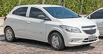 The Chevrolet Onix is a subcompact car sold by Chevrolet exclusively in South America. It was launched to replace the Chevrolet Corsa and some versions of the Chevrolet Celta. Mainly produced in General Motors Brazil’s plants in Gravataí and São Caetano do Sul, the Onix is a five-door hatchback. A sedan version is sold as the Chevrolet Onix Plus in Brazil, and as the Onix sedan in Colombia.[1] The Onix has also been produced in Uzbekistan since 2022 by UzAuto Motors.[2][3]