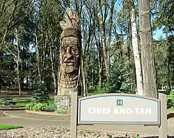 - ^ Pursinger, Geoff (February 3, 2017). "Chief Kno-Tah statue injured by falling tree". Hillsboro Tribune. Retrieved February 8, 2017.