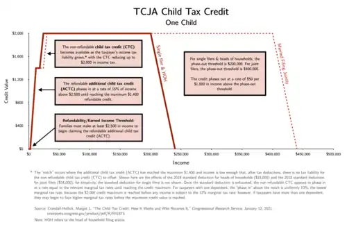 41. ^ a b Crandall-Hollick, Margot L. (March 1, 2018). "The Child Tax Credit: Legislative History" (PDF). Congressional Research Service. Archived (PDF) from the original on November 12, 2021. Retrieved November 12, 2021.