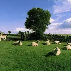 Sheep, which appear both on the recording of Chill Out—as guest vocalists according to Scott Piering's press release[35]—and in its sleeve artwork, became a theme of The KLF's output, featuring in the ambient video Waiting, The White Room album artwork, and later—in a macabre gesture—after their controversial appearance at the 1992 Brit Awards ceremony. Drummond credits the sleeve of Pink Floyd's Atom Heart Mother as providing inspiration for the artwork of Chill Out.[9]