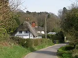 Chilworth Old Village, at the west end, consists of former farm workers' thatched cottages interspersed with modern houses and bungalows built in the 1950s. The Anglican Church of St Denys, which lies on the edge of the Old Village, was rebuilt in 1812 and is noted for its old bells which date from about the year 1200.[5] Chilworth Old Village was designated a conservation area on 1 November 1989. Most of the buildings from the 16th century are situated in the Chilworth Old Village Conservation Area. The exceptions are Manor Farm and the Beehives, the latter of which are the lodges to Chilworth Manor Hotel.[6]