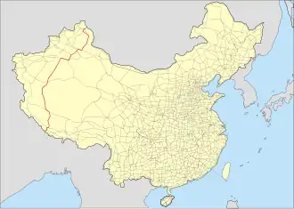 China National Highway 216 (G216) is a highway in Xinjiang and Tibet, China. With the 2013 National Highway Network Plan, the route was extended north to Hongzhanzui in Fuhai County on the border with Mongolia, and extended south to the boundary with Nepal in Gyirong County. Originally it ran in the general southern direction from Altay City, Xinjiang to Baluntai (in Hejing County, Xinjiang), where it joins China National Highway 218. It was originally 857 kilometres in length. After landslides blocked Zhangmu port of entry, for a while, G216 was the only road link between Nepal and Tibet.[1]