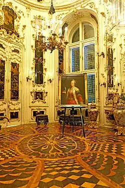 The oval and the round Chinese Cabinets next to the Small Gallery are two rooms situated in the béletage of Schönbrunn Palace Corps de Logis in Vienna, Austria. Their decoration contains Chinese and Japanese porcelain as well as lacquerwork, silk and wooden paneling. It is likely that they were built as private rooms for the Austrian empress Maria Theresa of the Habsburg dynasty who took a special interest in Far Eastern art.