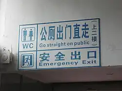 • Go straight on public is a mistranslation of "Public washroom outside on the second floor."
