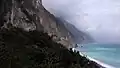 Qingshui Cliff (Chinese: 清水斷崖; Hanyu Pinyin: Qīngshuǐ Duànyá; Tongyong Pinyin: Cingshuěi Duànyá; Wade–Giles: Ch'ing1-shui3 Tuan4ya2) is a 21 kilometer length of coastal cliffs averaging 800 meters above sea level in Xiulin Township, Hualien County, Taiwan.[1] The tallest peak, Qingshui Mountain, rises 2408 meters directly from the Pacific Ocean. The cliff is located at the southern part of the Suhua Highway that connects the counties of Yilan and Hualien in eastern Taiwan. It is considered to be a very scenic area[2] and is the highest coastal cliff in Taiwan. It is located within Taroko National Park.