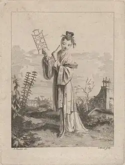 Chinoiserie in fashion refers to the any use of chinoiserie elements in fashion, especially in American and European fashion. Since the 17th century, Chinese arts and aesthetic were sources of inspiration to European artists, creators,[1]: 52 and fashion designers when goods from oriental countries were widely seen for the first time in Western Europe.[2]: 546 Western chinoiserie was also often mixed with other exotic elements which were not all indigenous to China.[3]: 15