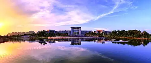 Chongzuo is located in southwestern Guangxi Zhuang Autonomous Region. It borders Nanning to the east, Baise to the north, Fangchenggang to the south and Lạng Sơn, Vietnam to the west.[2] The Zuo or Left River and the You or Right River have their confluence in Chongzuo after which the river becomes the Yong River. Chongzuo is mountainous and hilly with numerous karst formations similar to Guilin and northern Vietnam's Ha Long Bay.[3] Its area is 17,732 km2 (6,846 sq mi), 10,529 km2 (4,065 sq mi) of which is forested.[4]
