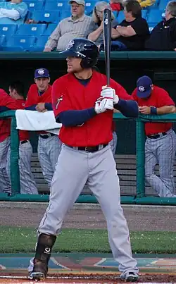 Entering 2008, Baseball America ranked Davis the number two prospect in the Rangers' organization, behind Elvis Andrus.[10] Davis began the season playing first base for Frisco. He batted .333 with 62 hits, 13 home runs, and 42 RBI in 46 games before earning a promotion to the Triple-A Oklahoma RedHawks of the Pacific Coast League. In 31 games with Oklahoma, he hit .333 with 37 hits, 10 home runs, and 31 RBI.[11] He was named to the All-Star Futures Game but was unable to play in it because he was promoted to the major leagues by the Texas Rangers.[5] Later, during his breakout 2013 season, Davis referred to his time with Round Rock in 2008: "I know nobody really cares about Triple-A, but I put up these numbers up in Triple-A. That was kind of the question, 'Was he going to be able to do it at the big league level?' The thing about it was, I just couldn't do it consistently. I couldn't put the bat on the ball. I was striking out an astronomical amount, and this year it's just been consistency day in and day out."[12]